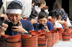 Wanko-soba is a style to eat soba. An amount of soba you can drink at one time is sereved until you close the top of the bowl. Iwate has two tournaments in Morioka city and in Hanamaki city. But Hanamaki's is larger than Morioka's. The highest score is 254 cups in 5 minutes.